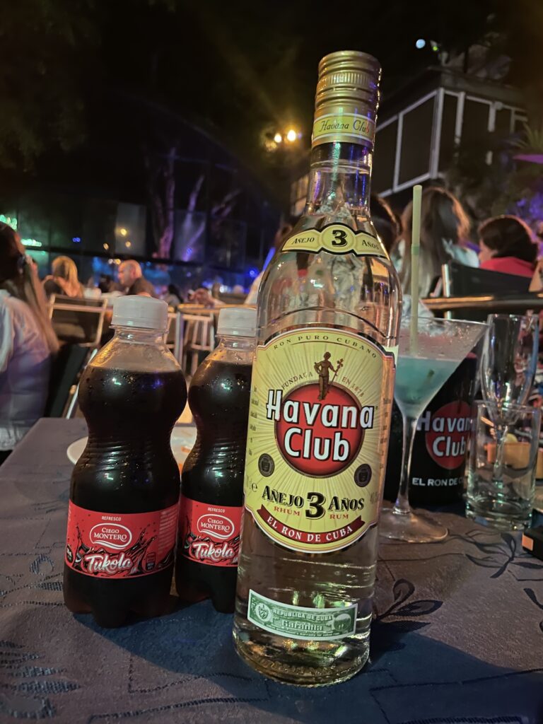 テーブルには各人にナイフとフォーク、ナプキンが用意され、ドリンクが注文できます。ショーには無料のコーラとハバナクラブの3年物(ラム)が各テーブルにつく、氷も用意されており、ショーの途中に自分でラムコークを作れるようになっています。